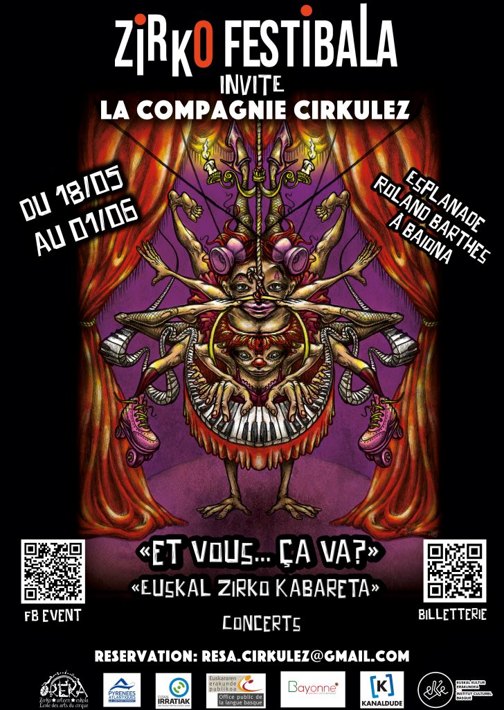Au programme : spectacle de la compagnie invitée, Euskal Zirko Kabareta, spectacle de rue, soirée cirque et lecture, médiation artistique avec les scolaires, ateliers, concerts…